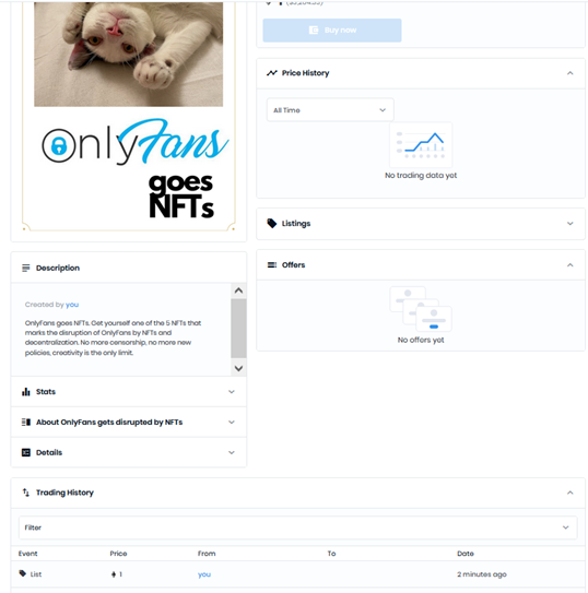 As you can see, creating and posting for sale your NFT is a very easy process. Therefore, a shift of creators towards NFTs and decentralization would probably not be surprising, especially in the yet unexplored field of adult content.