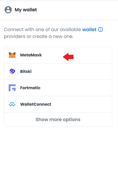 3) Select the wallet that you plan to use, here we will use MetaMask.