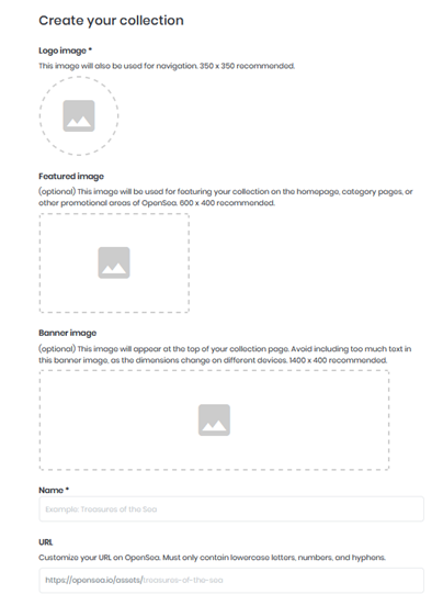 Logo image (optional): here you can upload an optional 350 x 350 photo for your collection