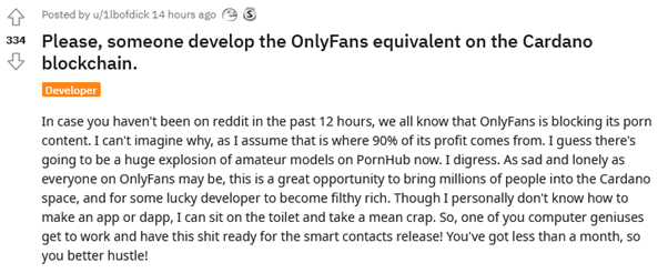 This whole movement might be the start towards a shift in decentralization. Reddit posts have already started to appear, asking for a decentralized version of OnlyFans. However, another avenue might appear as well, the use of NFTs for sharing adult content. In the last months, NFTs have been created for museums, art galleries, sports teams, different pieces of art and luxury goods, games, auction houses, and it seems like the next big area to conquer is the adult content world.